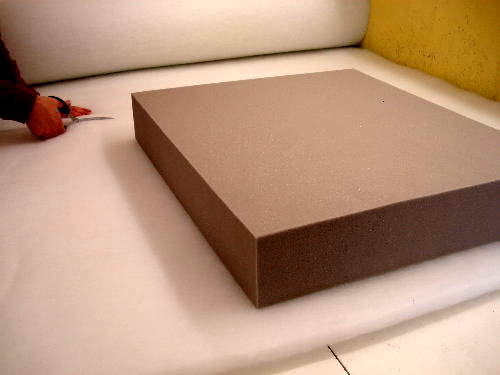 We then cut the foam at the sizes given by measuring as above. The grade of foam will depend on the hardness or softness you prefer the cushion to have.